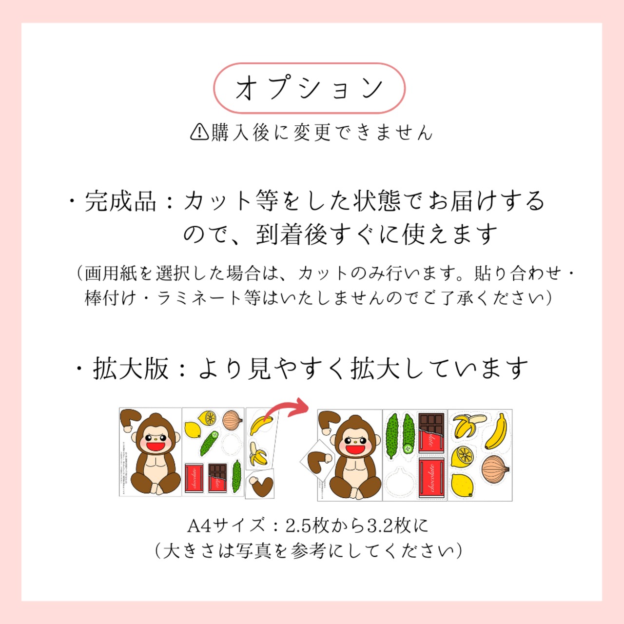 ▣完成品⇢+¥1500(⚠︎画用紙の場合はカットのみ:貼り合わせ・縫い付け・棒付け・ラミネート等はいたしませんのでご了承ください)