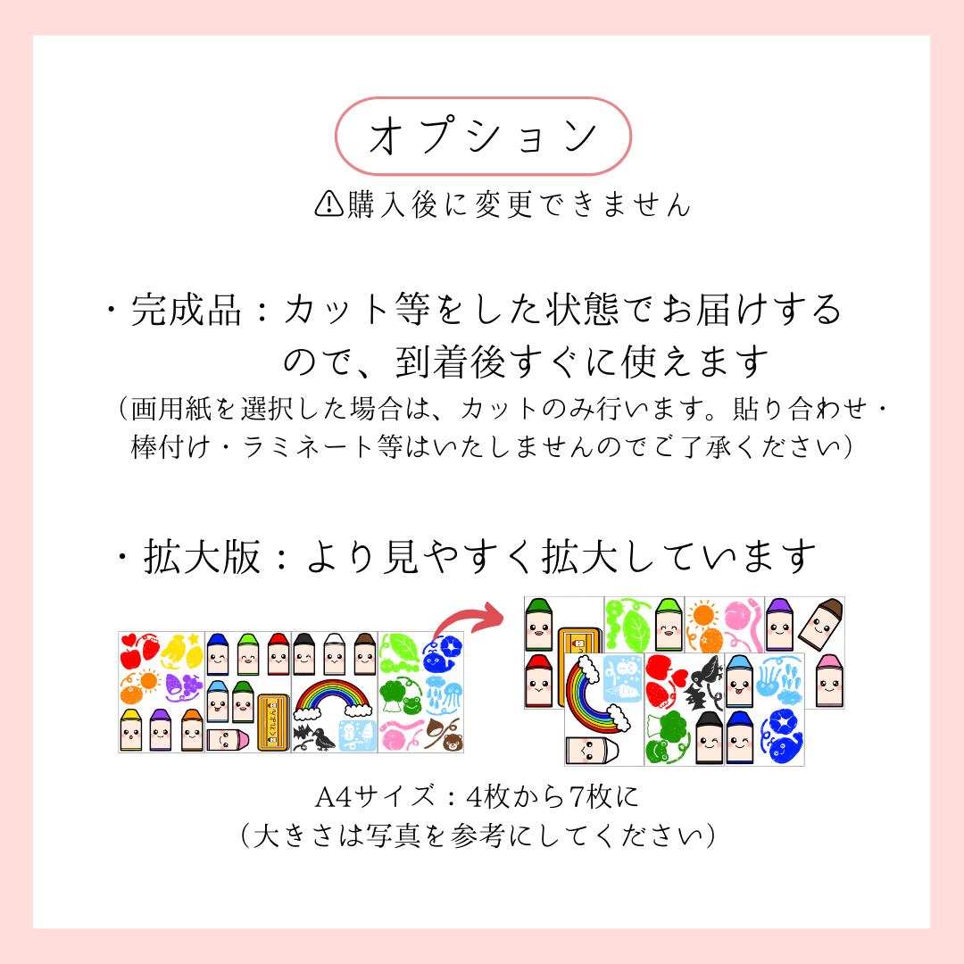 ▣完成品⇢+¥1000(⚠︎画用紙の場合はカットのみ:貼り合わせ・縫い付け・棒付け・ラミネート等はいたしませんのでご了承ください)